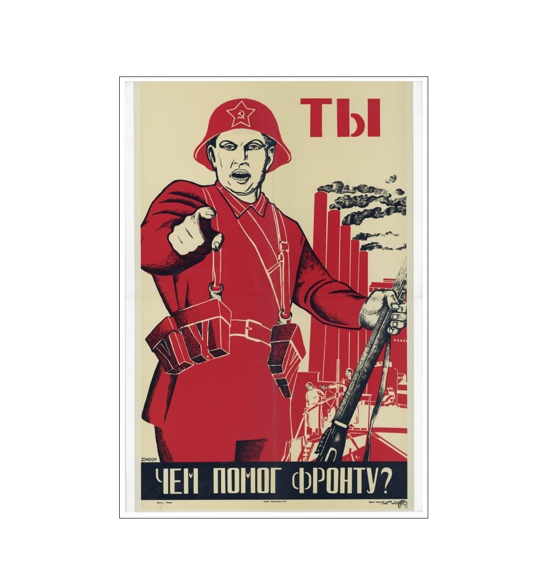 🔹 В начале Великой Отечественной войны, в 1941 году, художник-плакатист Дмитрий Стахиевич Моор (Орлов) использовал композицию своего плаката периода Гражданской войны «Ты записался добровольцем?» под новым лозунгом: «Ты чем помог фронту?».