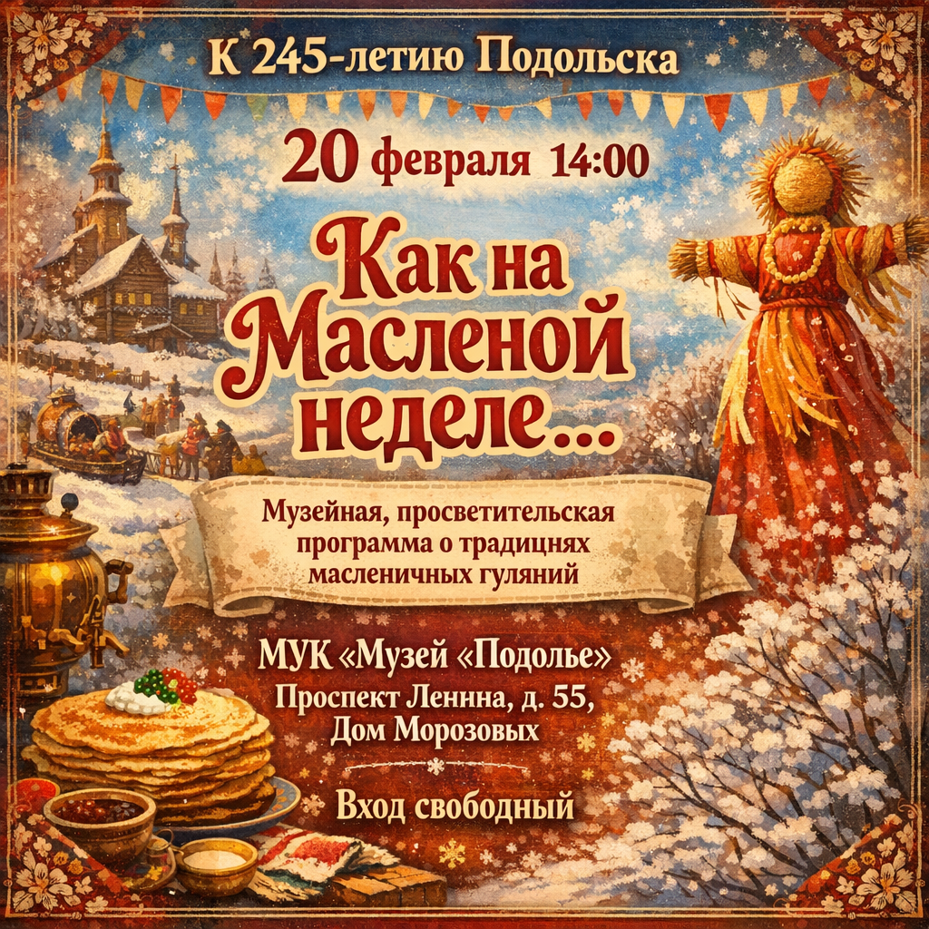 20 февраля в 14:00 музей-заповедник «Подолье» приглашает вас на яркую музейную просветительскую программу